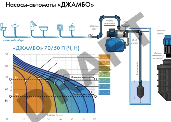 Насосная станция ДЖАМБО 70/50П-50 1100Вт глубина 9м высота 50м 4200л/ч 50л