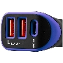Адаптер CANYON Universal 3xUSB car adapter, Input 12V-24V, Output DC USB-A 5V/2.4A(Max) + Type-C PD 18W, with Smart IC, Black+Purple with rubber coating, 71*39*26.2mm, 0.028kg