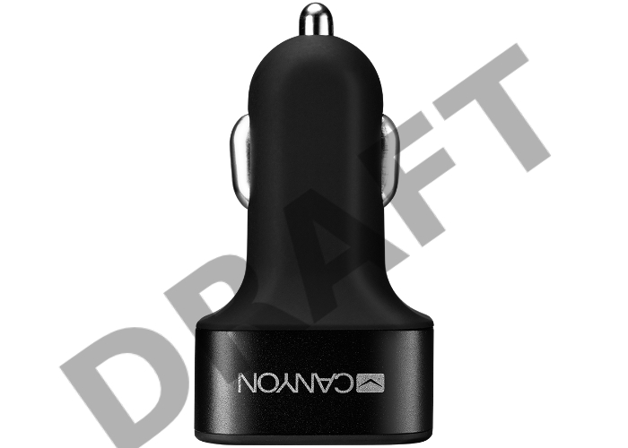 Зарядное устройство CANYON Universal 3xUSB car adapter, Input 12V-24V, Output 5V-3.1A, black rubber coating+black metal ring (side with USB is in plastic), 66*35.2*25.1mm, 0.025kg