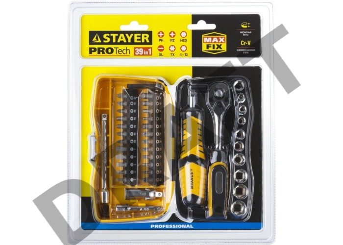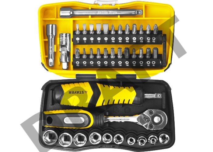 Биты и торцовые головки с трещоткой и воротком 39шт STAYER PROFI 25135-H39