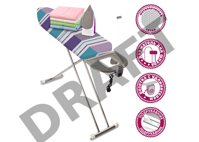 Доска гладильная Мастерица IB-0104, 42*120см, материал: сталь, хлопок, поролон; столешница: сетка, металл; розетка с удлинит, подрукавник (2)