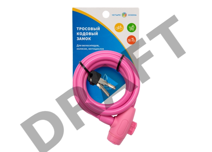 Тросовый замок взломостойкий для велосипедов и колясок с ключом 150 см розовый