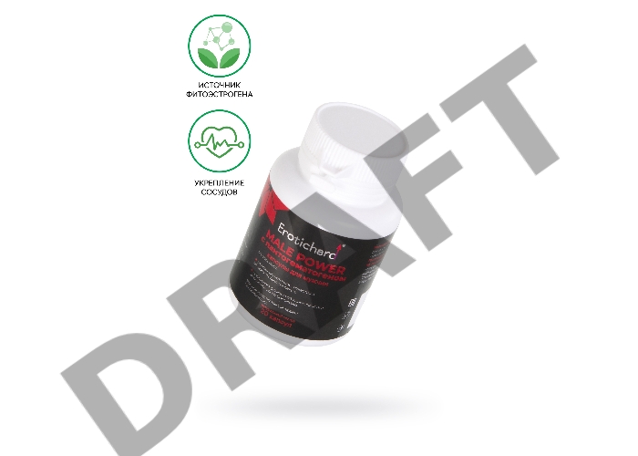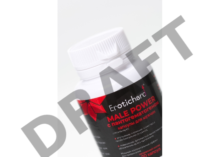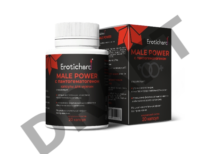 Капсулы возбуждающие для мужчин Erotichard, MALE POWER с пантогематогеном, 20 капсул