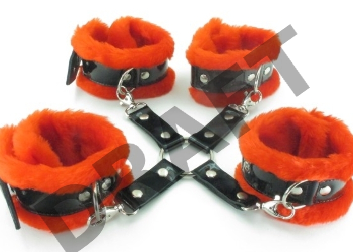 Черно-красная крестообразная меховая фиксация для рук и ног