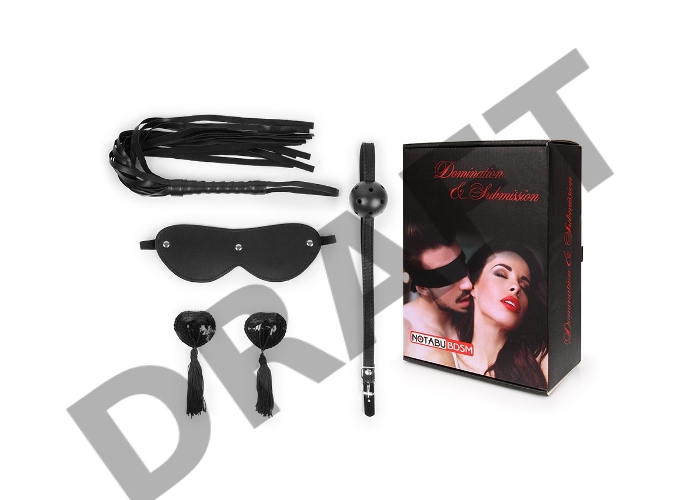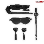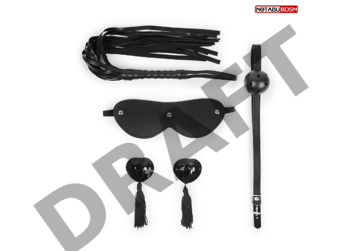 Эротический набор в черном цвете: маска, кляп, пэстисы, плётка