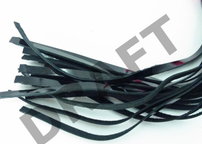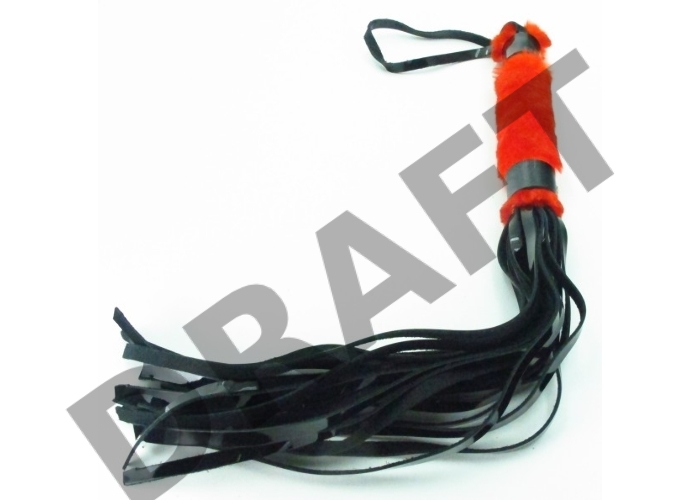 Черная лаковая плеть с красной меховой рукоятью - 44 см.
