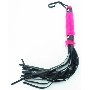 Черная лаковая плеть с розовой меховой рукоятью - 44 см.