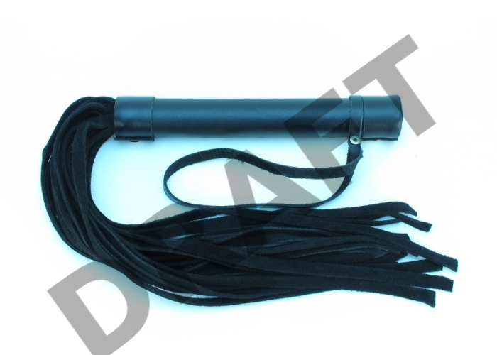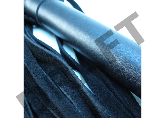 Черная замшевая плеть с гладкой кожаной рукоятью - 45 см.