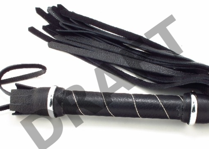 Чёрная кожаная плётка с белой строчкой на рукояти - 45 см.