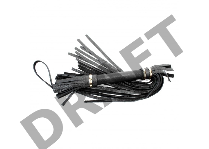 Чёрная плетка из натуральной кожи с золотистой отделкой - 45 см.
