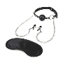 Чёрный кляп-шар с зажимами для сосков
