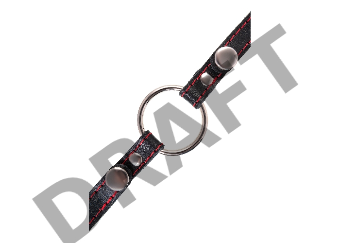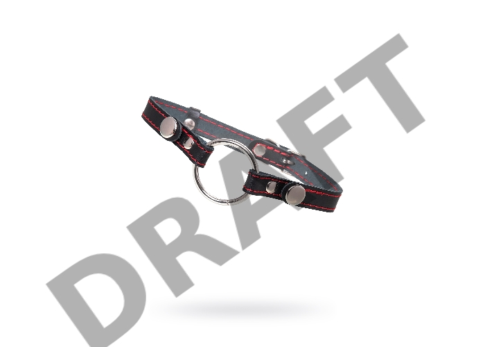 Кляп Кольцо 39 мм с красной строчкои Pecado BDSM, натуральная кожа, черный