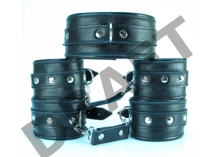 Набор БДСМ-аксессуаров из кожи: ошейник, наручники и оковы
