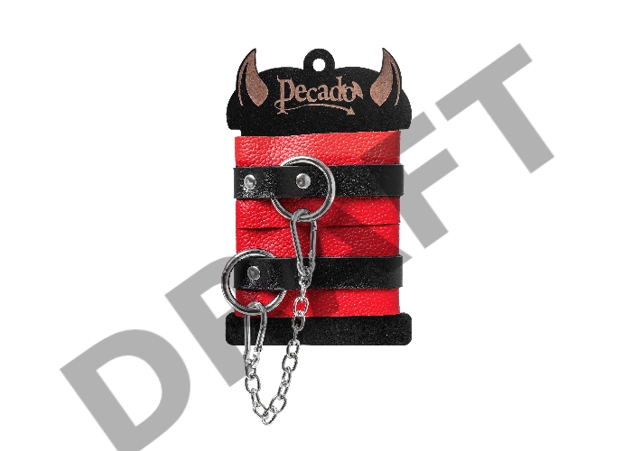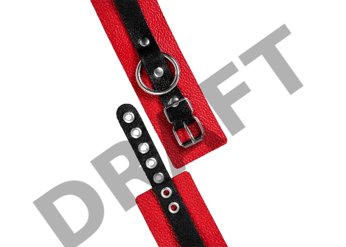 Оковы Pecado BDSM, мягкие, с одним ремешком с люверсами, натуральная кожа, красно-чёрные