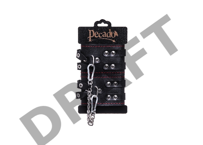 Оковы с двумя ремнями и чернои подкладкои Pecado BDSM, натуральная кожа, черные