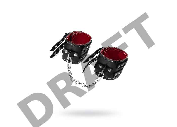 Оковы с двумя ремнями и краснои подкладкои Pecado BDSM, натуральная кожа, черные