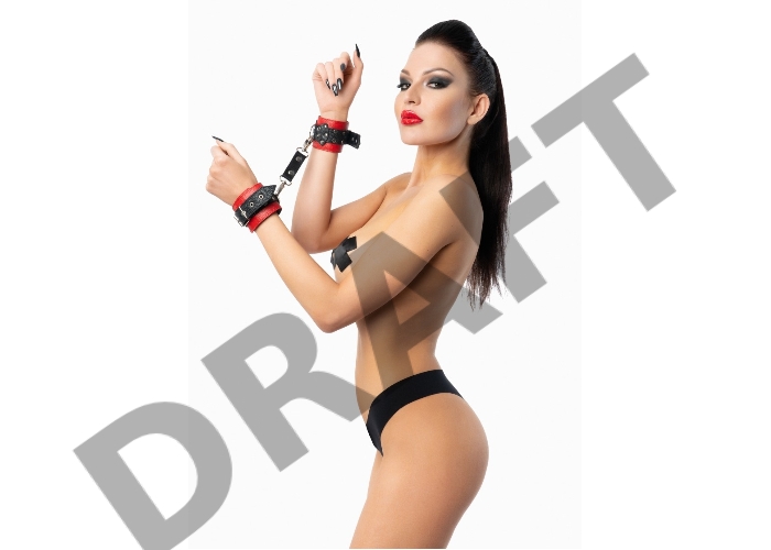 Кожаные наручники черно-красные