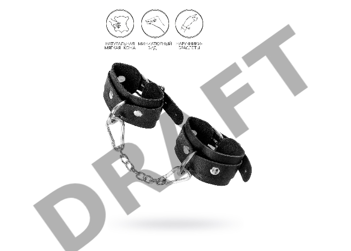 Наручники-браслеты Pecado BDSM, мини со скруглёнными углами, натуральная кожа, чёрные