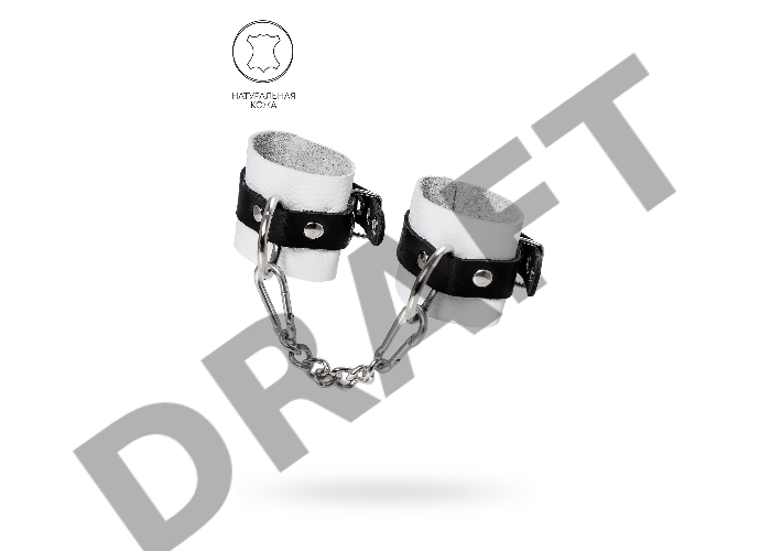 Наручники Pecado BDSM, мягкие, с одним ремешком с люверсами, натуральная кожа, бело-чёрные