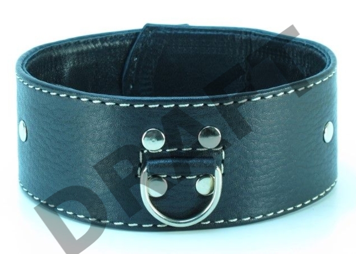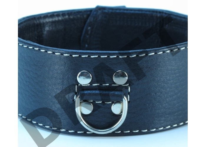 Черный кожаный ошейник с полукольцом для поводка