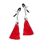 Зажимы на соски прищепки с кисточками из шелка Pecado BDSM, металл, красный