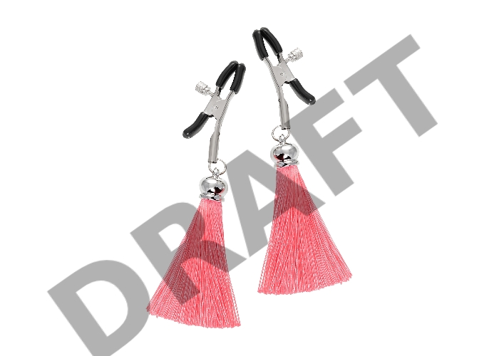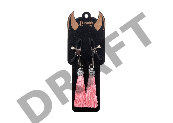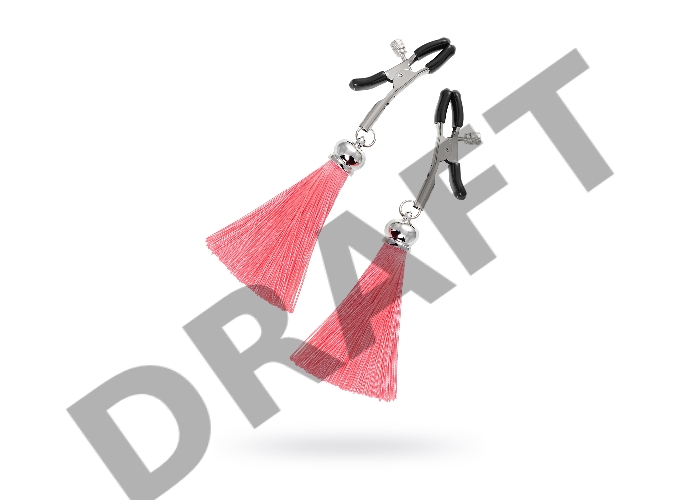 Зажимы на соски прищепки с кисточками из шелка Pecado BDSM, металл, розовый