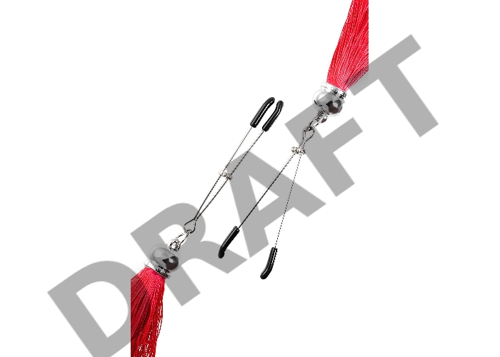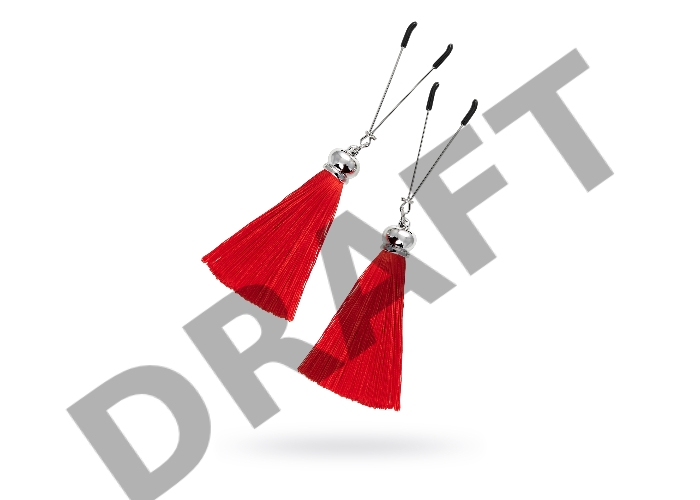 Зажимы на соски вилки с кисточками из шелка Pecado BDSM, металл, красный