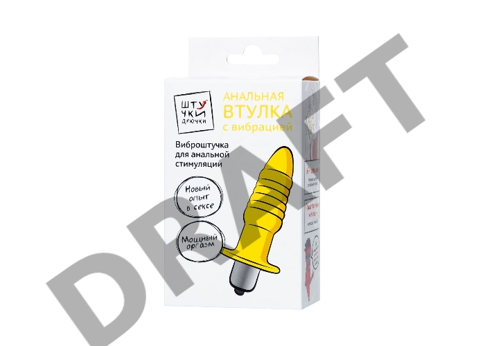 Анальная вибровтулка Штучки-дрючки, 7 режимов вибрации, влагостойкая, силикон, желтая, 11 см,