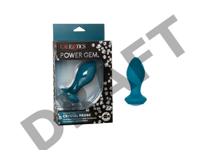 Бирюзовая анальная вибропробка с кристаллом Power Gem Vibrating Crystal Probe - 10,75 см.