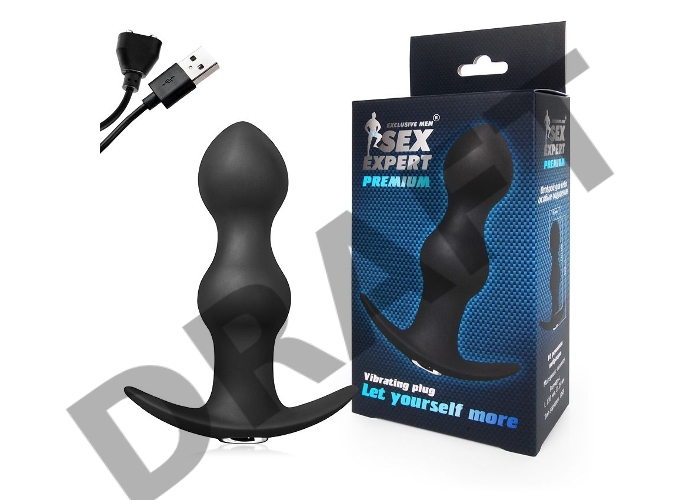 Черная фигурная перезаряжаемая анальная пробка - 12 см.