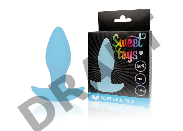 Голубая коническая анальная вибровтулка с ограничителем - 8,5 см.