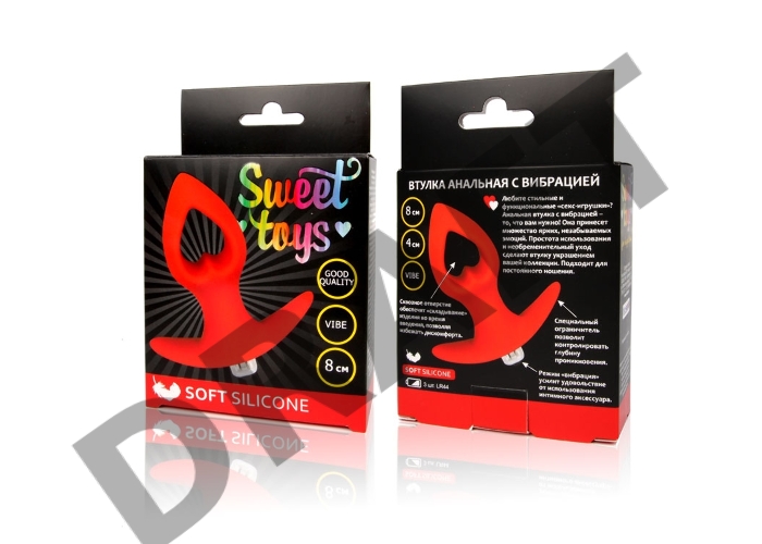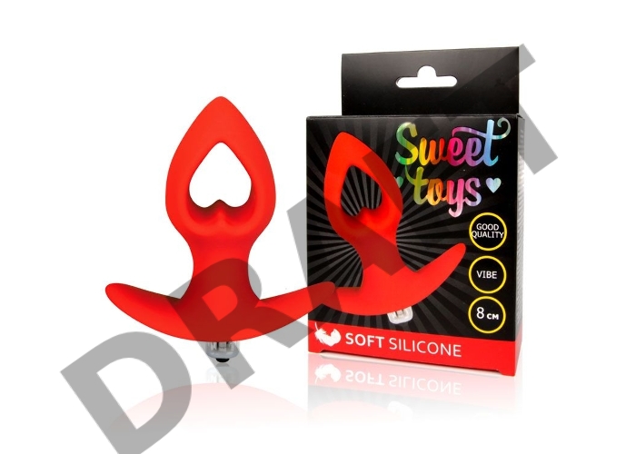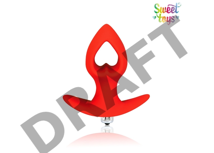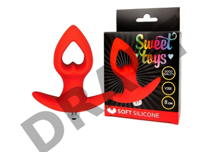 Красная анальная вибровтулка-сердечко с ограничителем - 8 см.