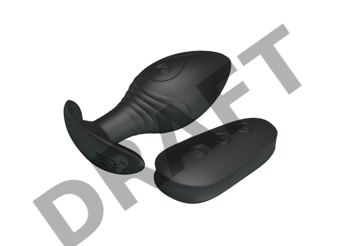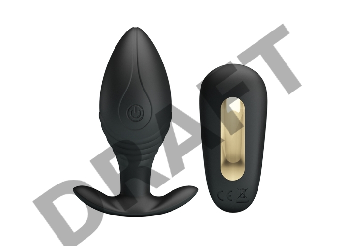 Роскошная черная анальная вибропробка Regina с пультом ДУ - 8,8 см.