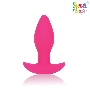 Розовая коническая анальная вибровтулка с ограничителем - 8,5 см.