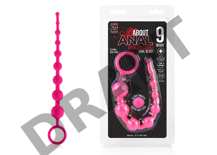 Розовая анальная цепочка из 9 шариков - 30 см.