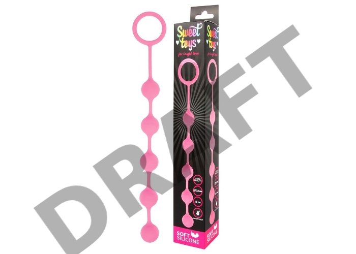 Розовая анальная цепочка с кольцом-ограничителем - 23 см.
