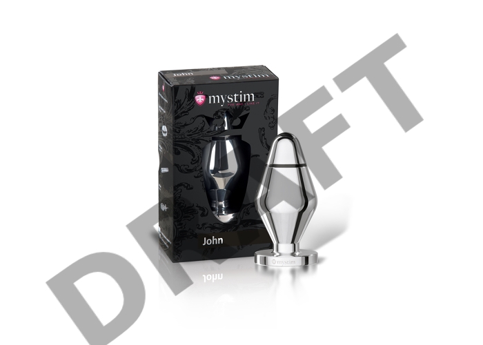 Анальная пробка Mystim John L, электростимуляция, хирургическая сталь, серебряная, 10,5 см, Ø 5 см