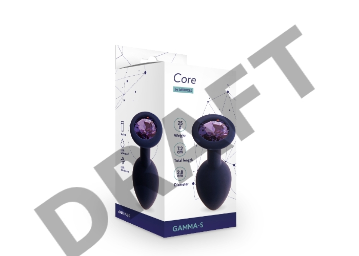 Анальная пробка с кристаллом Gamma, цвет Черничный + фиолетовый кристалл (CORE)