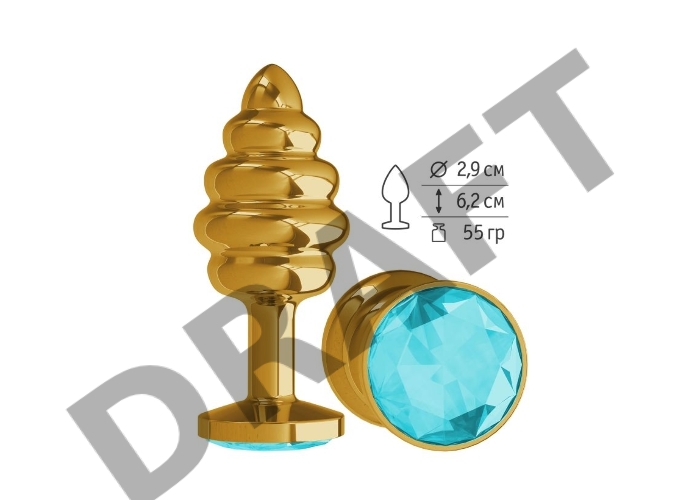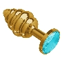 Анальная втулка Gold Spiral с голубым кристаллом маленькая