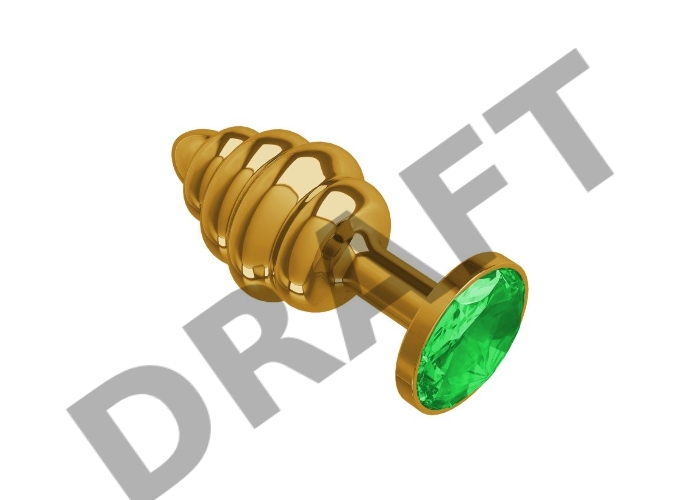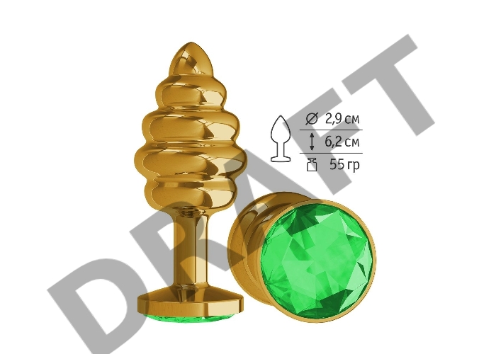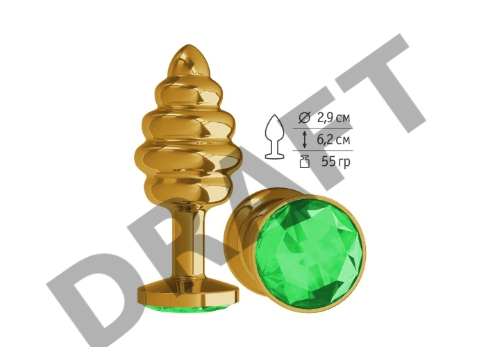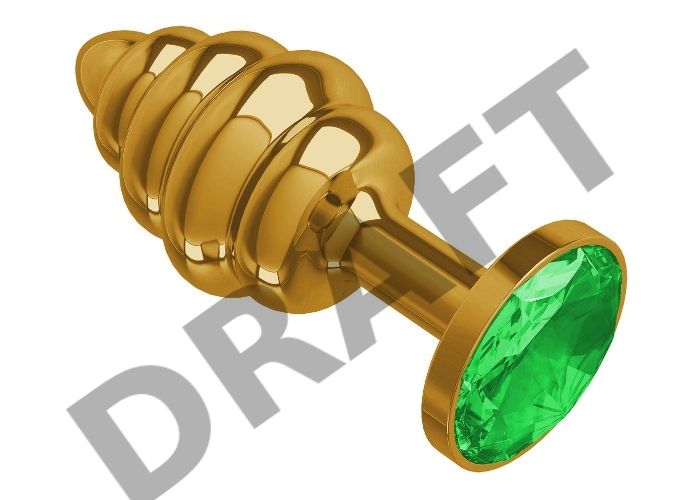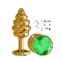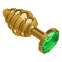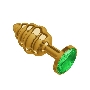 Анальная втулка Gold Spiral с зеленым кристаллом маленькая