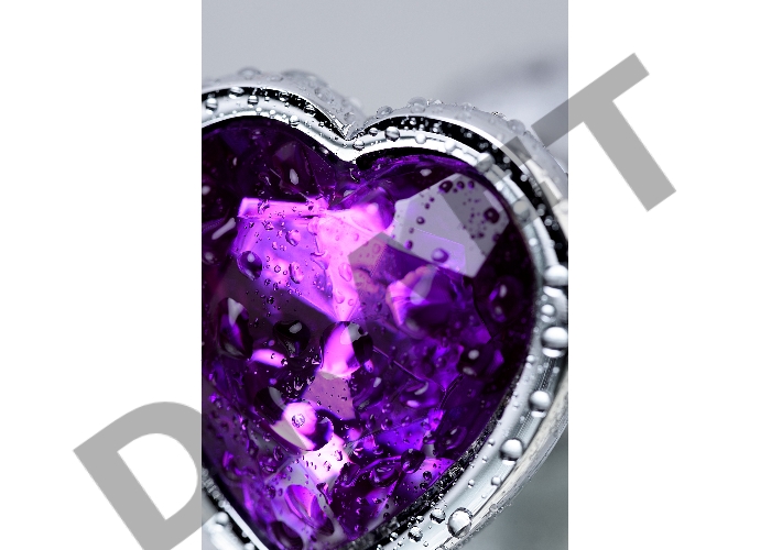 Анальная втулка Metal by TOYFA, металл, серебряная, с фиолетовым кристаллом, 7 см, Ø 2,7 см, 50 г