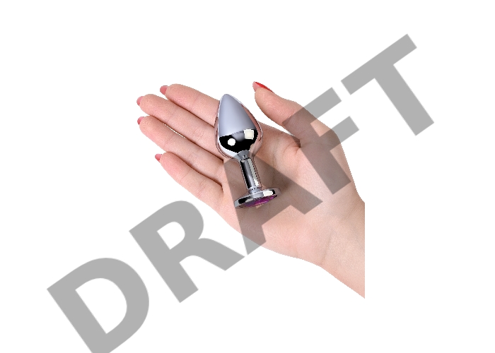 Анальная втулка Metal by TOYFA, металл, серебряная, с фиолетовым кристаллом, 8 см, Ø 3,4 см, 85 г