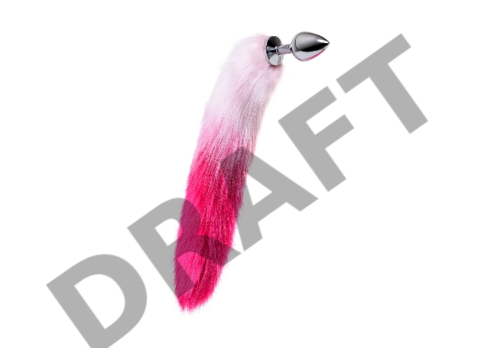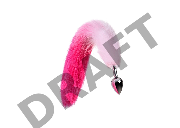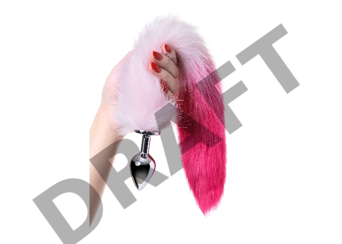 Анальная втулка Metal by TOYFA с бело-розовым хвостом, металл, серебряная, 45 см, Ø 3,3 см