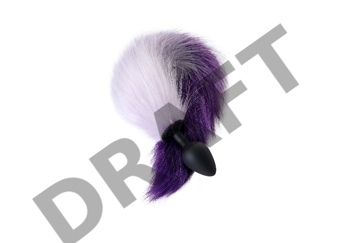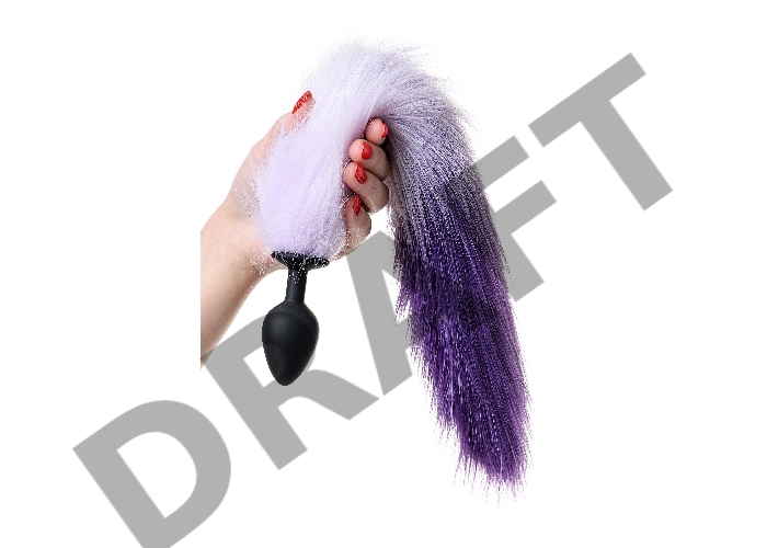 Анальная втулка с бело-фиолетовым хвостом POPO Pleasure by TOYFA, M, силикон, черная, 45 см, Ø 3,3 с