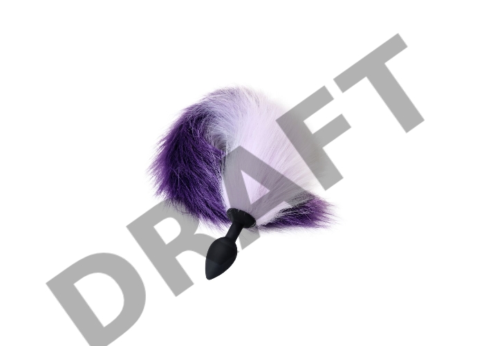 Анальная втулка с бело-фиолетовым хвостом POPO Pleasure by TOYFA, S, силикон, черная, 45 см, Ø 2,7 с