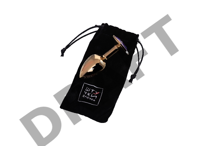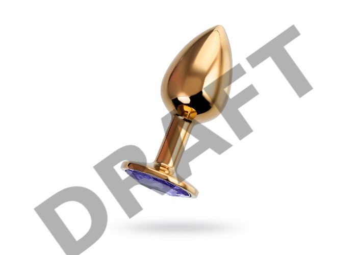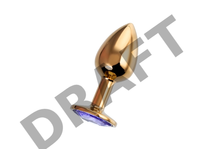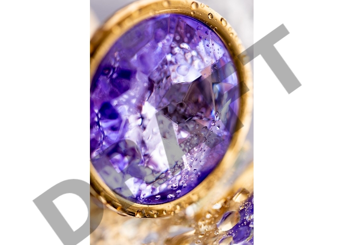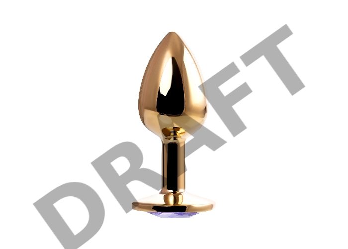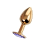 Анальная втулка Штучки-Дрючки, металл, золотая, с фиолетовым кристаллом, 7 см, Ø 2,8 см, 50 г