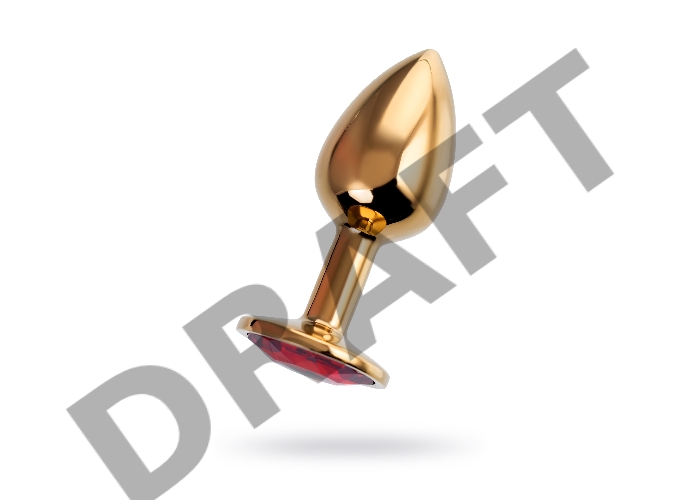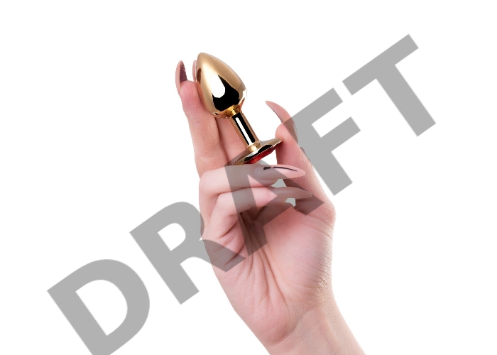 Анальная втулка Штучки-Дрючки, металл, золотая, с красным кристаллом, 7 см, Ø 2,8 см, 50 г