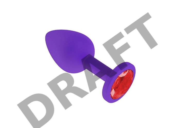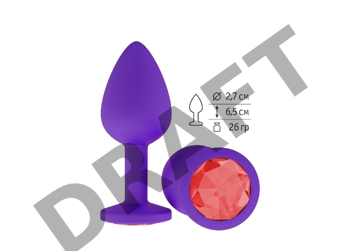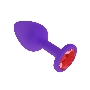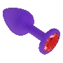 Анальная втулка силиконовая фиолетовая с красным кристаллом маленькая