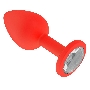 Анальная втулка силиконовая красная с прозрачным кристаллом маленькая