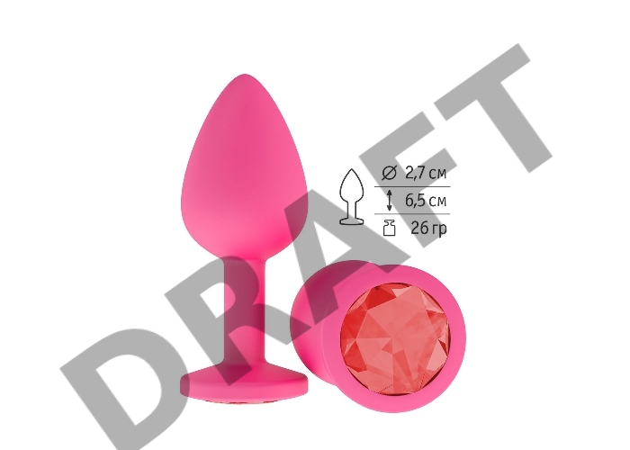 Анальная втулка силиконовая розовая с красным кристаллом маленькая
